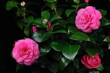 茶梅葉革質(zhì),橢圓形,上面發(fā)亮,下面褐綠色,網(wǎng)脈不顯著;邊緣有細(xì)鋸齒,葉柄稍被殘毛?;ù笮〔灰唬拜嗥蝗崦?;花瓣闊倒卵形,雄蕊離生,子房被茸毛,蒴果球形,種子褐色,無毛。